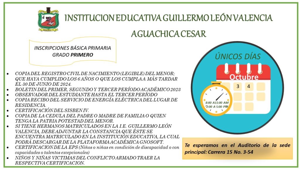 Dirección: Carrera 15 # 3-54, Aguachica, Cesar | Correo: eeguillermoleon@educacioncesar.gov.co